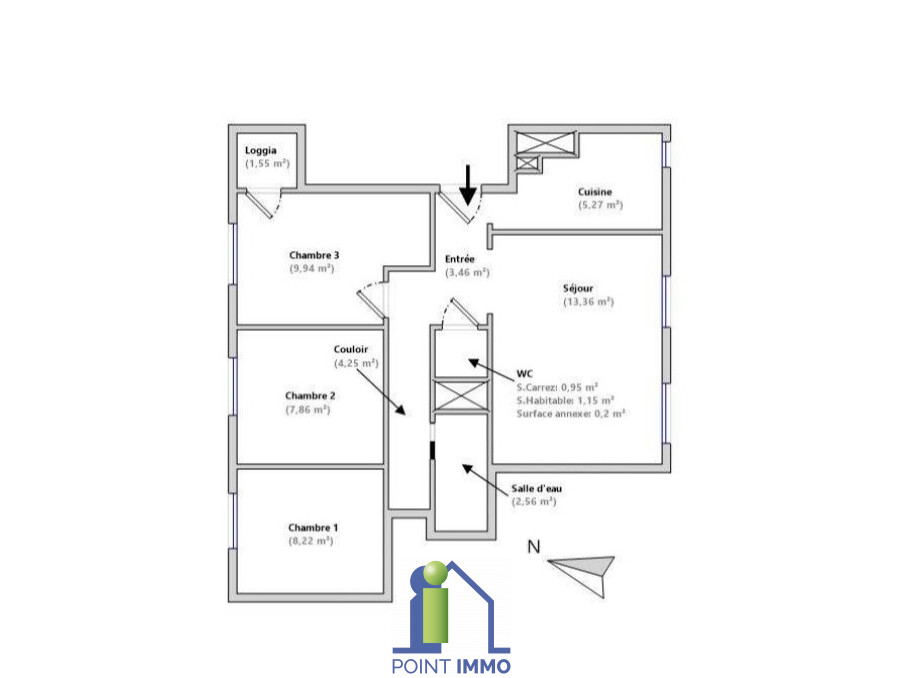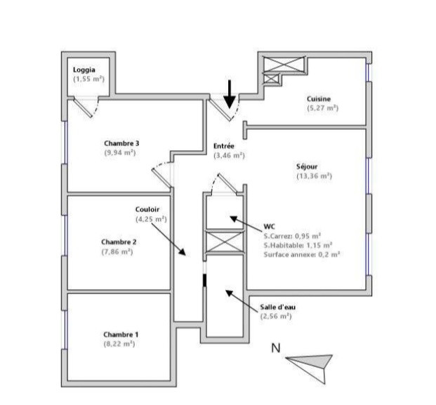 Vous pourrez profiter d'un hall d'entrée, un séjour, une cuisine séparée à aménager avec votre goût, 3 chambres dont une avec loggia, une salle d'eau et des WC séparés.