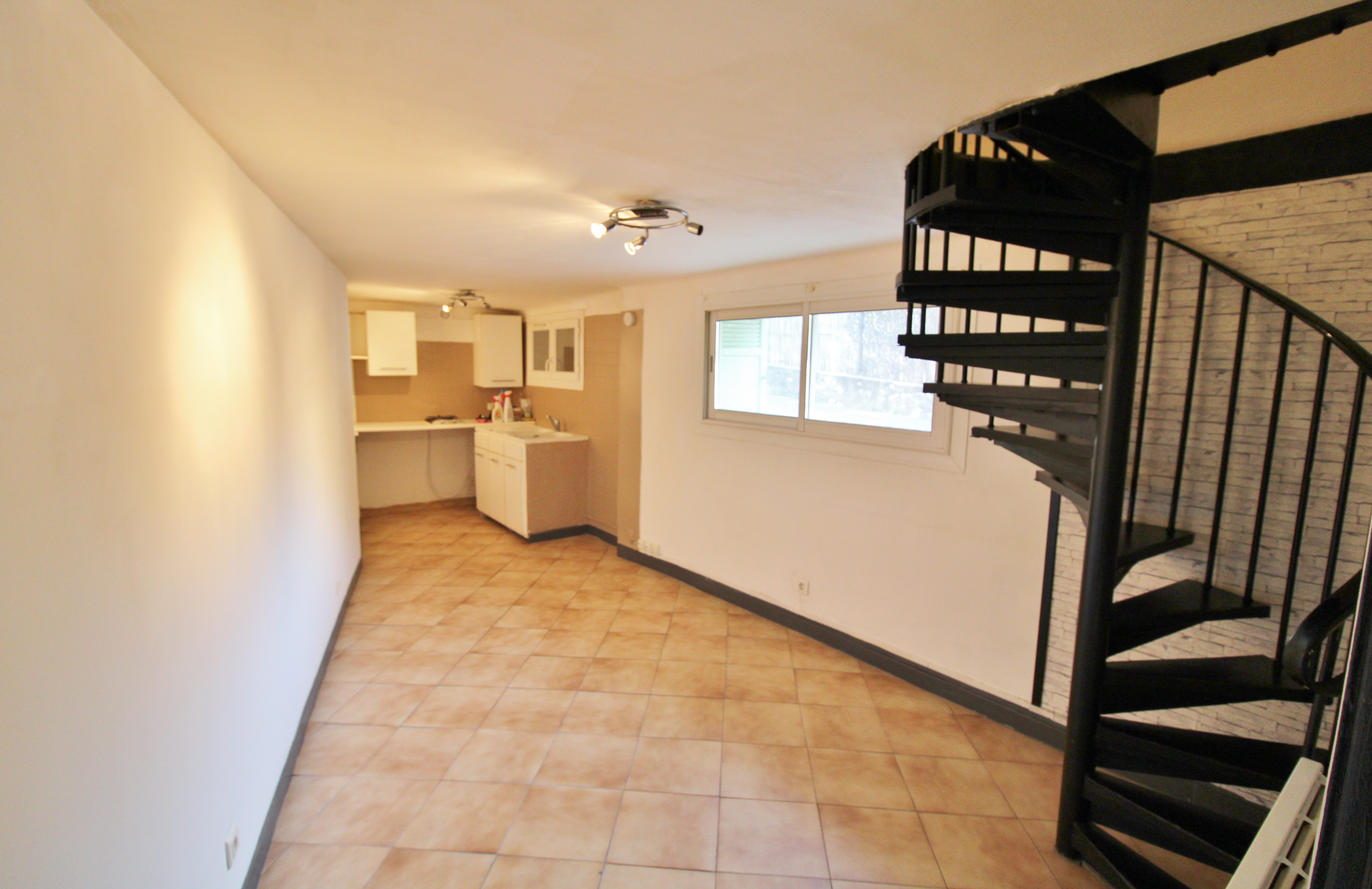 Petite maisonnette T2 DUPLEX de 34 m2 sur Allauch, quartier La Fève, comprenant un séjour avec un coin cuisine, une salle d'eau avec W.C., A l'étage une petite chambre, un dressing et un balcon.